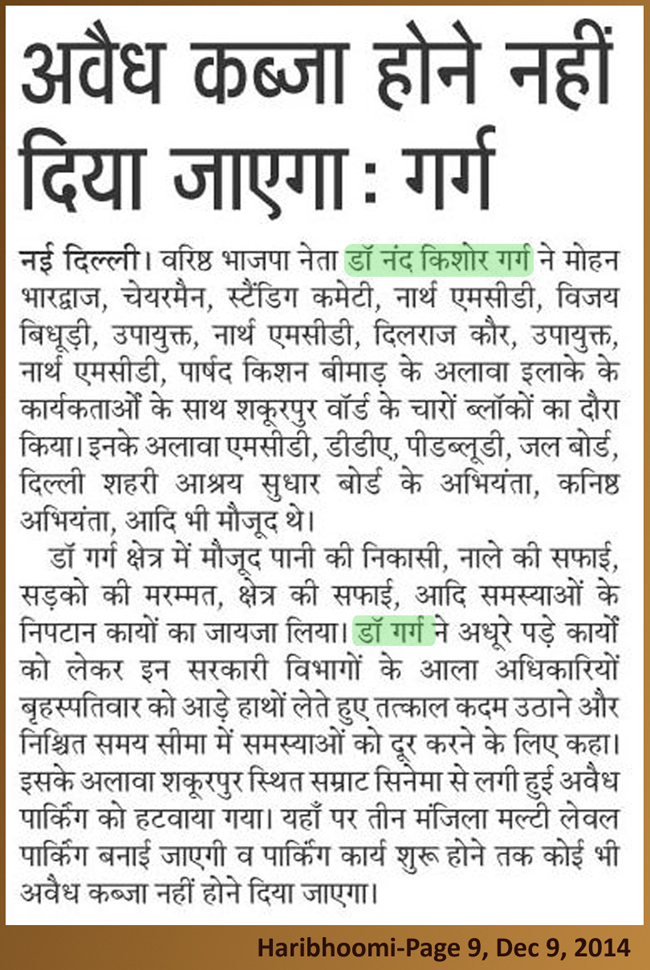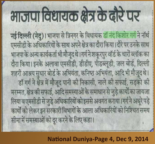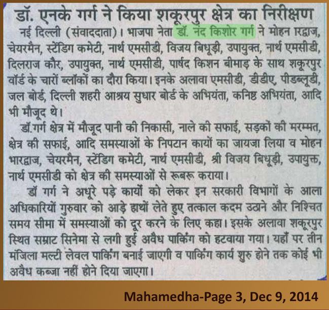 डॉ नन्द किशोर गर्ग ने किया शकूरपुर क्षेत्र का निरीक्षण।